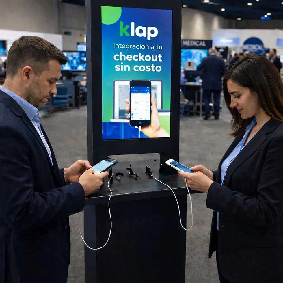 Pantallas interactivas, totems de autoatención, estaciones de carga y softwares.